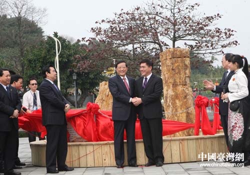 2月17日下午,遼寧參訪團(tuán)一行專程赴臺(tái)北“花博會(huì)”,將3棵大小不等,最高2.05米,頂部直徑0.50米,累計(jì)重量達(dá)3600公斤,生長(zhǎng)于侏羅紀(jì)時(shí)期,有著1.5億年歷史的硅化木作為此行的伴手禮贈(zèng)送給臺(tái)北市民。陳政高與臺(tái)北市長(zhǎng)郝龍斌一同為硅化木揭幕。儀式上,陳政高表示由衷地希望遼寧人民與臺(tái)灣人民的友誼像硅化木一樣天長(zhǎng)地久,牢不可破,贏得了圍觀民眾一片叫好聲。