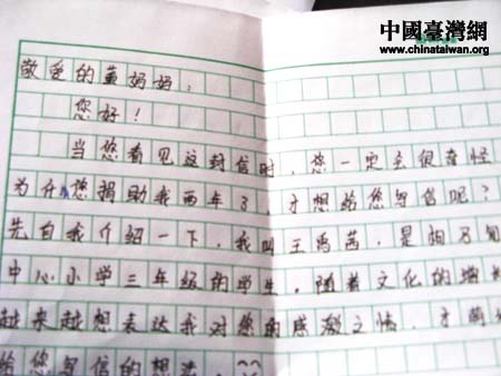 孩子們寫給董淑貞的感謝信。圖片來源:撫順市臺辦