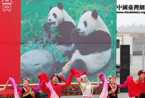 12月23日,成都雙流機(jī)場(chǎng)為贈(zèng)臺(tái)大熊貓和珙桐樹苗舉行歡送儀式,這是歡送儀式開始前現(xiàn)場(chǎng)表演少數(shù)民族歌舞。中國(guó)臺(tái)灣網(wǎng) 田云鵬 攝