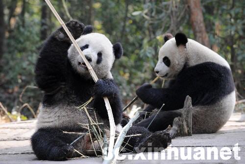 12月11日,大熊貓“團團”“圓圓”正在進食。 當日,來自海峽兩岸數十家媒體的記者來到中國保護大熊貓研究中心雅安碧峰峽基地,關注即將赴臺的大熊貓“團團”“圓圓”,了解它們的近況。目前,大熊貓“團團”“圓圓”的體重已分別達到112公斤和114公斤,兩只大熊貓每天要吃50公斤竹子。 新華社記者陳燮攝