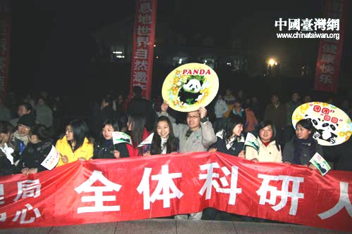 12月23日,四川雅安碧峰峽基地舉行大熊貓赴臺啟動儀式。啟運儀式開始前,碧峰峽基地的科研人員早早來到現場,為“團團”、“圓圓”送行。中國臺灣網 田云鵬 攝