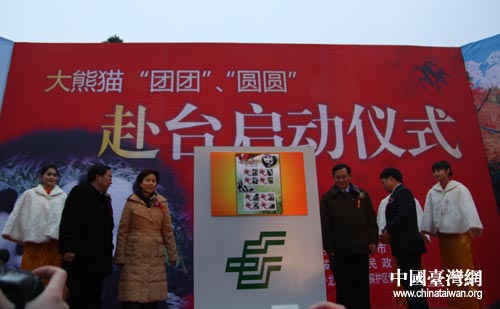 12月23日,四川雅安碧峰峽基地舉行大熊貓赴臺啟動儀式。儀式上,“團團”、“圓圓”個性化郵票及珍藏冊揭幕。 中國臺灣網 田云鵬 攝