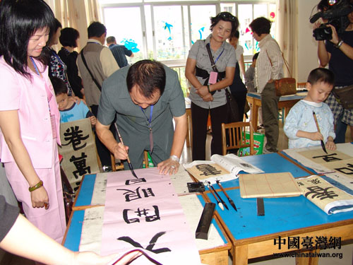 李厚業昨天率高雄市基層民意代表參訪團參訪了長沙咸嘉新村社區,在小太陽藝術幼稚園內,小朋友們不僅熟練背誦《弟子規》,而且三四歲就能寫毛筆字。他說,“不敢相信三四歲的小孩子會寫那么漂亮的毛筆字,是我從來沒有想到的。”應幼稚園的請求,李厚業題字表達了“大開眼界”的感受。