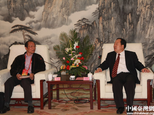 平頂山市長(zhǎng)李恩東(右)會(huì)見兩岸記者聯(lián)合采訪團(tuán)(中國臺(tái)灣網(wǎng) 宿靜 攝)