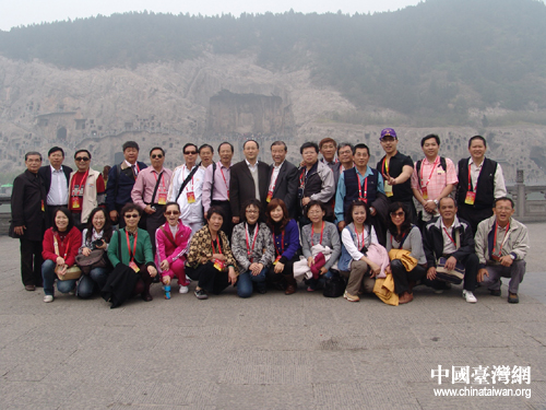 兩岸記者在龍門石窟前合影(中國臺灣網 宿靜 攝)