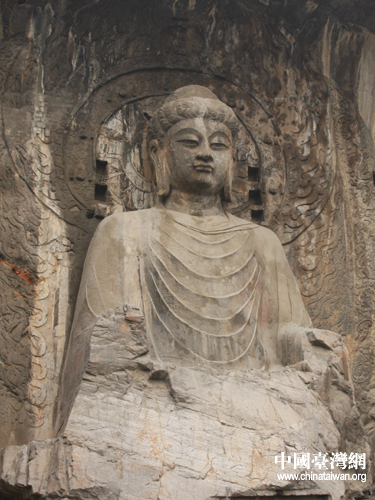 龍門石窟中規模最大、最精美的盧舍那佛。佛通高17.14米,頭部4米,耳朵1.9米,豐頤秀目,儀表堂堂。(中國臺灣網 宿靜 攝)