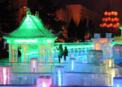 哈爾濱:五顏六色冰燈亮起來(lái)