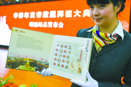 30日上午,在鄭州市郵政局舉行的“辛卯年黃帝故里拜祖大典”郵票郵品首發式上,精美的拜祖大典系列郵品揭開神秘面紗與公眾見面(如圖)。