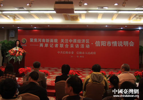 “2011年兩岸記者聯(lián)合采訪河南”記者走進(jìn)河南信陽(yáng),信陽(yáng)市政府舉行市情說(shuō)明會(huì)(中國(guó)臺(tái)灣網(wǎng) 吳捷 攝)