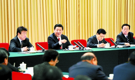 習(xí)近平說,聽了十位同志發(fā)言,深受啟發(fā),也使我進(jìn)一步了解了河南省的有關(guān)情況。2009年3月,我到河南去調(diào)研,對(duì)河南的發(fā)展、變化留下了深刻的印象。近幾年,河南的工作又有了長(zhǎng)足的發(fā)展,又開辟了新的局面?傮w上講,“十一五”時(shí)期,河南省委、省政府團(tuán)結(jié)帶領(lǐng)全省人民有效應(yīng)對(duì)了國(guó)際金融危機(jī)沖擊,使全省的綜合經(jīng)濟(jì)實(shí)力、糧食生產(chǎn)能力、城鎮(zhèn)化水平、基礎(chǔ)設(shè)施建設(shè)、人民群眾生活水平都跨上了一個(gè)新的臺(tái)階,河南已成為中國(guó)重要的經(jīng)濟(jì)大省、新興工業(yè)大省和有影響的文化大省。我對(duì)“十一五”時(shí)期河南取得的顯著成績(jī),呈現(xiàn)的良好發(fā)展勢(shì)頭感到由衷高興!笆濉睍r(shí)期是全面建設(shè)小康社會(huì)的關(guān)鍵時(shí)期,是深化改革開放,加快轉(zhuǎn)變經(jīng)濟(jì)發(fā)展方式的攻堅(jiān)時(shí)期。河南省委、省政府在本省的“十二五”規(guī)劃綱要中,圍繞五年彰顯優(yōu)勢(shì)、十年實(shí)現(xiàn)崛起的戰(zhàn)略目標(biāo),提出構(gòu)建中原城市群、糧食生產(chǎn)核心區(qū)、生態(tài)功能區(qū)三大格局,推進(jìn)工業(yè)化、城鎮(zhèn)化、農(nóng)業(yè)現(xiàn)代化協(xié)調(diào)發(fā)展,針對(duì)性、指導(dǎo)性都很強(qiáng)。我相信經(jīng)過全省人民的共同努力,這些戰(zhàn)略目標(biāo)和任務(wù)是可以實(shí)現(xiàn)的。