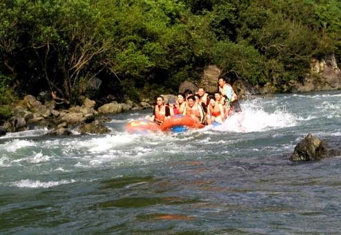 臨近終點(diǎn)時(shí),我們的船槳才完完全全地派上了用場(chǎng),這里水流平緩,船在水中徘徊不前,不得不齊心合力地劃動(dòng)著槳。此時(shí),樂趣來自于與同行船之間的“打水仗”,渾身濕透的我們毫不顧忌地將水潑向?qū)Ψ剑宦窔g聲笑語,令人回味無窮。全程3小時(shí)的漂流之旅,不僅是運(yùn)動(dòng)之旅,觀景之旅,還是一次呼吸清新空氣的健康之旅。(謝向榮 特約記者 尹秋艷)