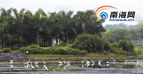 12月20日,建設中的白鷺公園大批白鷺云集覓食。海南日報記者蘇建強攝