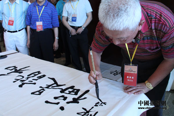 海協(xié)會(huì)副會(huì)長(zhǎng)王在希揮毫潑墨,筆下力拔千鈞(中國(guó)臺(tái)灣網(wǎng) 李徽 攝)