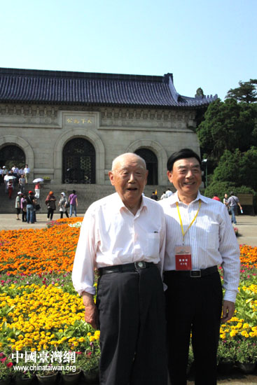 中國臺灣網5月25日南京消息 正在南京參加第二屆兩岸退役將軍高爾夫邀請賽的原臺憲兵司令王詣典中將24日隨團拜謁中山陵時,巧遇從美國歸來拜謁的前“臺灣陸軍官校”教務長竇懿倫。竇懿倫曾是王詣典當排長期間的的證婚人,如今天各一方多年的二人在大陸偶遇,不禁感慨萬千。