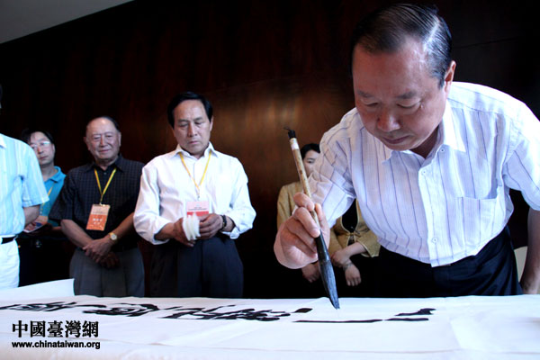 海協(xié)會副會長王在希揮毫潑墨,筆下力拔千鈞(中國臺灣網(wǎng) 李徽 攝)