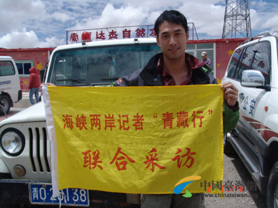 中國臺灣網7月13日格爾木消息 昨天,海峽兩岸記者青藏行聯合采訪團的記者采訪參觀了索南達杰保護站。記者們在采訪中,對藏羚羊等自然保護動物有了更深的認識,為了呼吁更多的人來關注和保護野生動物,兩岸記者用聯合簽名的方式,來表示對那些在艱苦條件下參與保護野生動物的志愿者的深深敬意,之后,兩岸記者把簽名的旗幟送給了索南達杰保護站的工作人員。(謝曉萍)