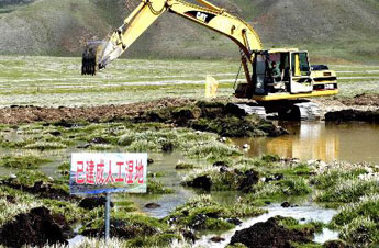 高原濕地被稱作“高原腎臟”。2003年,中鐵十三局在海拔4700米的那曲縣古露鎮建車站時,需要占用部分濕地。十三局投資110萬元,在植被稀疏處挖掘出與濕地等深的洼地,引進濕地原水,移植車站用地上的草皮。如今,這個面積8萬平方米的人造濕地水草茂盛,與周圍的自然濕地一般無二。這是世界上首次在高寒地帶人造濕地獲得成功。