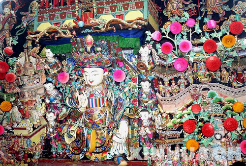 這是塔爾寺藝僧創作的酥油花作品,造型精美,栩栩如生,技藝高超,巧奪天工(攝于2月12日)。始建于1379年的中國黃教圣地塔爾寺是藏傳佛教格魯派創始人宗喀巴的誕生地,坐落在西寧市湟中縣宗喀蓮花山中。這里殿宇、佛塔林立,古樹參天,壯麗豪華。塔爾寺是青海藏區佛學界的最高學府,現設有顯宗、密宗、時輪、醫明四大學院(經院)。酥油花、壁畫、堆繡被譽為塔爾寺“藝術三絕”,因其具有很高的工藝水平和觀賞價值而聞名海內外。置身于此,藏傳佛教文化的博大精深讓人恍如走進藝術的天堂,而它來自偏遠的雪域荒原。塔爾寺距青藏鐵路西格段起點西寧市26公里,海拔約2500米。 (青海分社記者侯德強與西藏分社記者覺果合作攝)