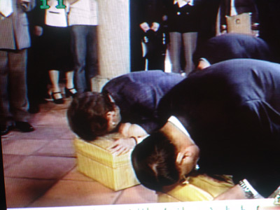 與在宗祠不同的是,連戰遵照古禮,從開基師祖連佛保的墓地上,取回了一小掊泥土,并隨家人繞祖墓一圈。