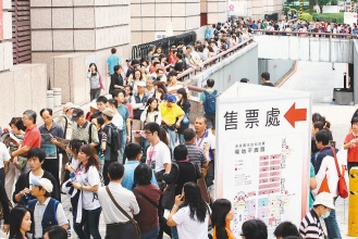 今年臺北國際旅展內外盡是排隊人潮。圖片來源:聯合報