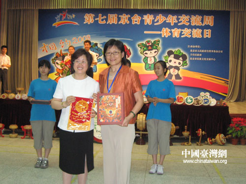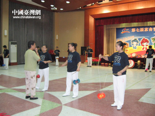 中國臺灣7月13日北京消息 今天上午,臺灣鶯歌高職扯鈴隊、臺灣強恕中學棒球隊、臺灣金甌女中女籃隊及臺北市公共利益文教基金會民俗文化參訪團到北京市豐臺二中進行表演交流。