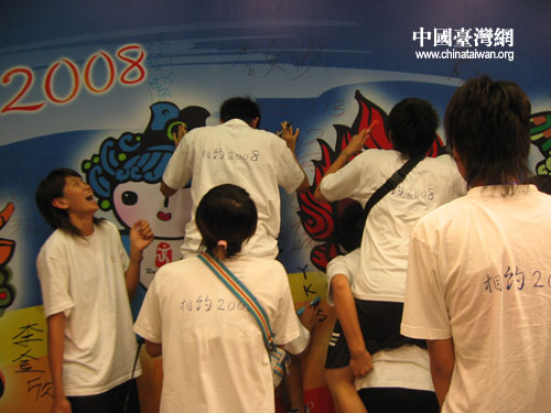 最后,在場嘉賓及師生紛紛在“第七屆京臺交流周”條幅上簽字留念,許多臺灣學生還別出心裁,騎在同伴身上,比賽看誰的名字簽的最高!小伙伴們私下互贈禮物,并留下聯系方式,以增進彼此友誼。(張立霞) |