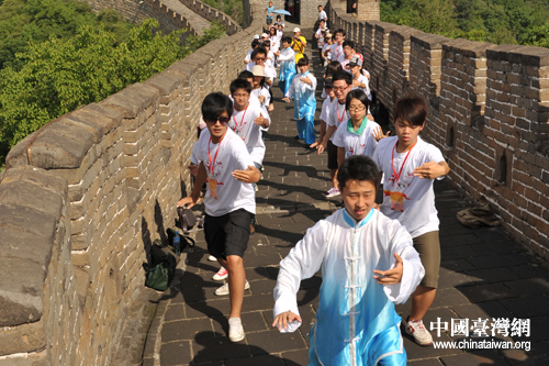 慕田峪長城上,兩岸青年舞動太極,銘刻友誼。