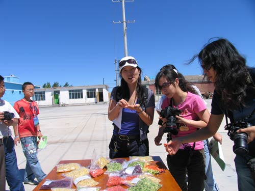 記者們紛紛用照相機記錄下綠色脫水蔬菜