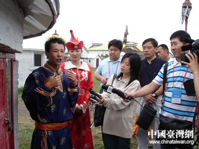 兩岸記者對蒙古包很感興趣