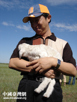 中國臺灣網7月18日新巴爾虎左旗消息 見識了達斡爾族牧民家庭牧場之后,海峽兩岸記者昨天來到了新巴爾虎左旗大草原,零距離的接觸了羊群。