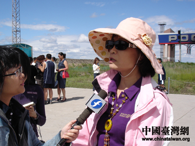 邊境線上代表中國國界的石碑旁,留影的游客絡(luò)繹不絕,兩岸記者也抓住這個難得的機會,在國界上留下了最燦爛的笑容。巧合的是,記者在游客中也發(fā)現(xiàn)了臺灣同胞的身影。來自臺北的陳女士一家四口每年都會趁著假期來大陸游覽祖國的山水名勝,從南到北走過了很多地方,到過最北的城市是漠河。這次來到內(nèi)蒙古,陳女士表示,這里的風(fēng)景和臺灣是完全不同的類型,草原的景色很漂亮,不親眼看到是根本無法想象的。經(jīng)常來大陸旅游的陳女士還說,每次來大陸都感覺很舒服,因為我們都是中國人,不管去到什么地方都會覺得很親切。