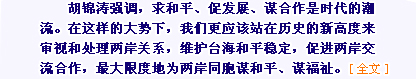 胡錦濤就兩岸“三通”講話。兩岸春節包機航班確定。贈臺大熊貓乳名揭曉。