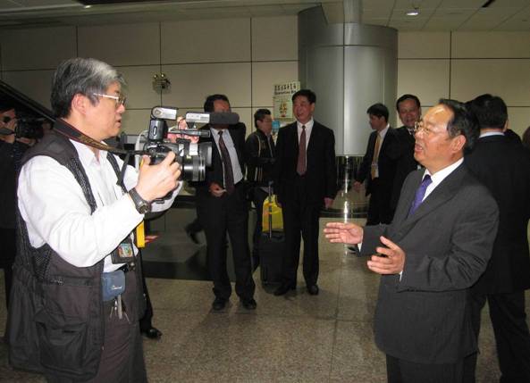 山東省旅游局于沖局長在桃園機場接受臺灣《聯(lián)合報》記者采訪