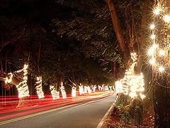 集集鎮公所為了讓游客白天與黑夜都能欣賞集集綠色隧道的風情,特別在長達數公里綠色隧道的每一棵樹干上,都纏上許多小燈泡,入夜之后這些小燈點亮,讓整個綠色隧道都亮了起來,讓路過的游客都不禁放下腳步,慢慢的欣賞這晚上的美景。