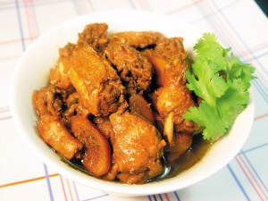 三杯雞是臺灣名菜之一,其風味獨特,以色澤紅潤光亮,雞肉軟滑細嫩,醬汁醇厚香濃而聞名。菜名有“三杯”,是因烹調雞塊時,加入一杯醬油、一杯食油和一杯米酒,不放湯水,直接將雞塊慢火燉制而成,成菜起鍋后香味濃郁,誘得人食欲大增。