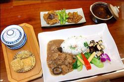 經營的大溪花海農場餐飲部主任石明欣表示,總共五十二個座位,但假日用餐時段翻桌率有三輪,其中蔣家風味獅子頭、蔣公家傳大肉面和奉化芋香栗燒雞是游客最愛的江浙風味前三名。