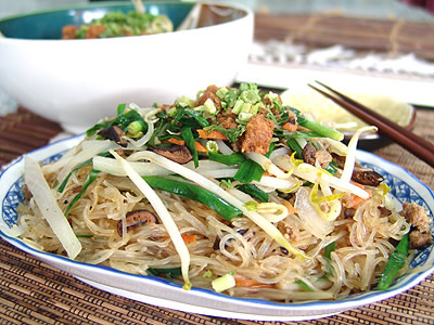 振松記的老板娘林小姐指出,店里的米粉都是采傳統方式制作,具有古早的風味。她特別推薦了店里最后歡迎的美食米粉湯與炒米粉,熱騰騰的米粉湯,撲鼻而來的是高湯的香氣,半透明、彈性絕佳的米粉加上韭菜、肉燥及芋頭,光是賣相就讓人食指大動,而米粉湯最重要的就是湯頭,這里的湯頭香郁但是不油膩,反而清淡爽口。