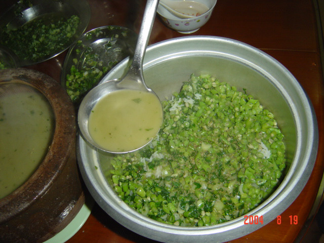 令人稱絕的是擂茶不排斥任何“饗料”,幾乎所有的食物都可加入,可葷可素,可粗可精。農家取材,極為方便。豆米花生、粉條干果之類應先煮熟,連水沖入;菇筍香料和肉類應另行炒熟再加;芝麻米花則可直接撒入茶中。用勺攪勻,即成佳品。既可解渴,又可充饑,用以待客,經濟實惠。