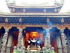 三峽清水祖師廟的石雕之美,從鎮守正門的石獅到黃鶴樓周瑜設詭計、華容道關公放曹操、金雁橋孔明捉張任、飛龍案包公審狄青等石窗人物的雕刻,甚至是,中殿四對花崗石大柱有于右任、賈景德、高拜石等名流撰寫,由石匠陰文雕刻的石刻對聯,最能充分感受!每根石柱需1000多個工作天完成,所耗費功夫技巧,自然不在話下!