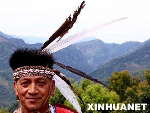 7月7日,臺灣鄒族長老湯進賢展示鄒族頭飾。 鄒族是臺灣少數民族族群之一,目前有7000多人,大多以務農為生,主要分布在阿里山、高雄等山地。湯進賢在鄒族人口主要聚集地嘉義縣阿里山鄉樂野村從事旅游服務業。 新華社記者陳建力攝