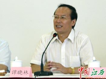 譚曉林主持“研討會”新聞發布會 中國江西網記者 楊冗晟 攝
