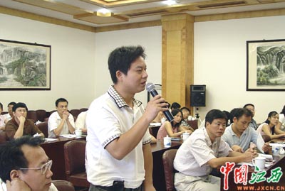 本網記者在新聞發布會上提問 中國江西網記者 楊冗晟 攝