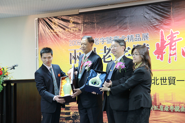 臺北市進出口商業同業工會總干事黃俊國和浙江省老字號企業協會秘書長丁惠敏在會上分別致詞。丁惠敏向臺灣媒體介紹了浙江省老字號企業的淵源、發展歷程和現狀以及精品展基本概況。浙江省老字號企業協會會長、胡慶余堂掌門人馮根生和臺北市進出口商業同業工會總干事黃俊國代表雙方互贈了禮物。