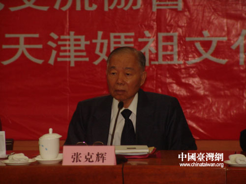 中國臺灣網9月21日天津消息 昨天下午,中華媽祖文化交流協會第一屆全員大會第三次會議暨第一屆理事會第四次會議在天津召開。全國政協副主席、中華媽祖文化交流協會會長張克輝出席此次會議并做了重要講話。