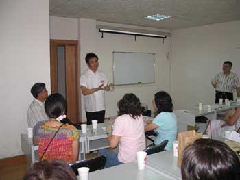 本次焙烘活動由大成公司臺灣資深烘焙師張俊禹經(jīng)理主講授課。張經(jīng)理用詼諧幽默的言語首先給大家講述了有關面包的故事,從第一塊面包講起,又講到了傳統(tǒng)面包的起源,最后講述了現(xiàn)代面包,臺商太太們聽得津津有味,興致勃勃。