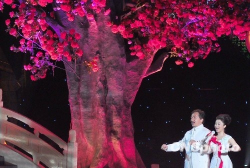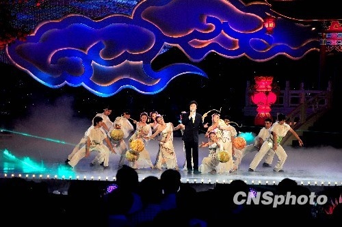 10月3日晚,一場全球華人的民族文化盛宴在江西宜春拉開序幕,20多位兩岸三地明星參加此次“宜春月中華情”由央視向全球直播的中秋晚會。中新社發段長征 攝