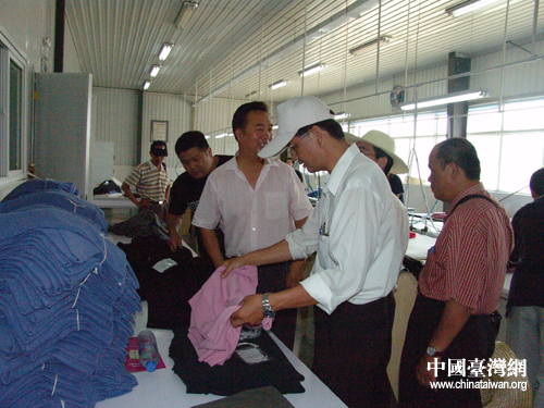 7月9日,在寧夏參加“海峽兩岸記者聯(lián)合采訪活動(dòng)”的兩岸記者一行參觀采訪靈武羊絨工業(yè)園