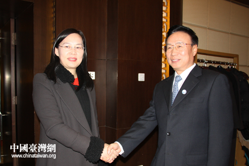 海協會秘書長李亞飛27日在京會見海基會副秘書長林淑閔率領的“兩岸公證業(yè)務大陸參訪團”(鐘寶華 攝) |