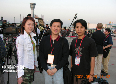 2005年5月,東南衛視副總監孫原(中)率《海峽新干線》記者薛含喆(左)等跟蹤采訪親民黨主席宋楚瑜大陸行