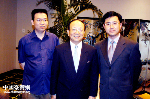 東南衛視主持人成洋(左一)與親民黨主席宋楚瑜合影